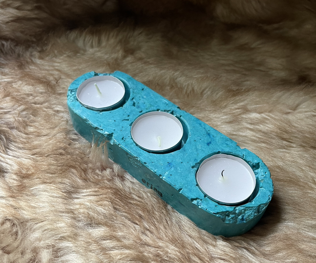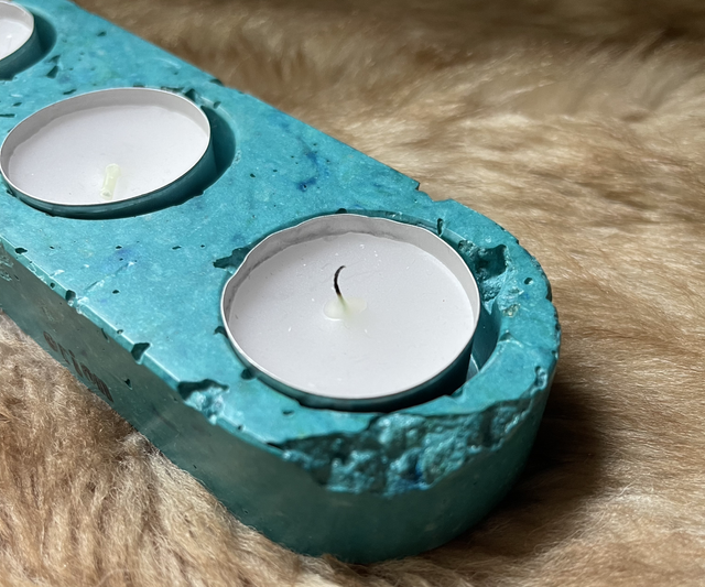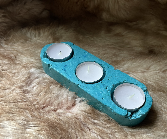 Bougeoir pour bougies chauffe-plats 3 trous fabriqué à la main en papier-plâtre teinté.