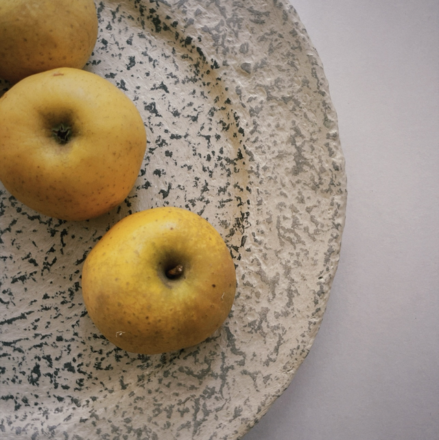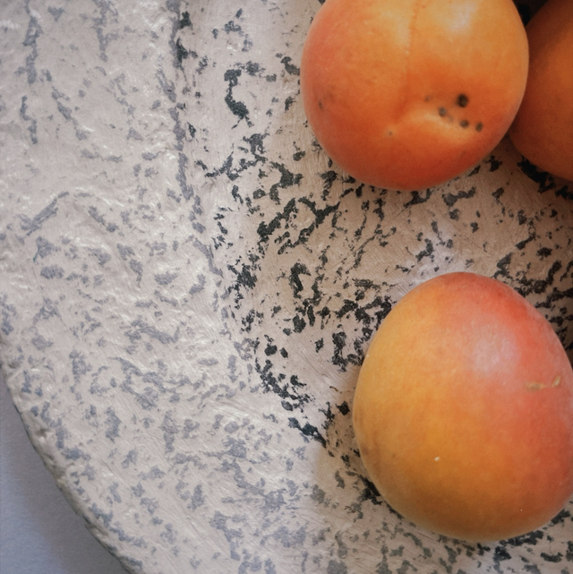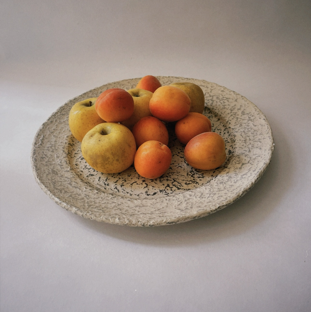 Ce plat est un objet surcyclé. C’est un plat en céramique ébréché recouvert de papier-mâché.