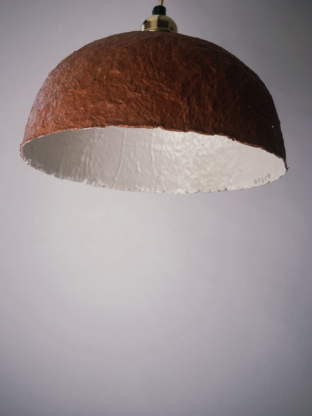 Suspension en papier-mâché fabriqué de manière artisanale, teinté couleur terra-cotta, intérieur blanc cassé